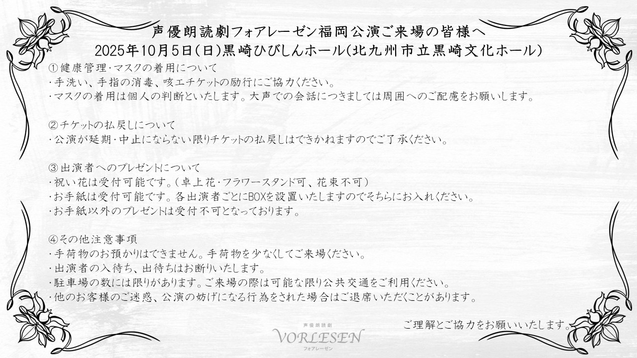 声優朗読劇フォアレーゼン福岡公演ご来場の皆様へ